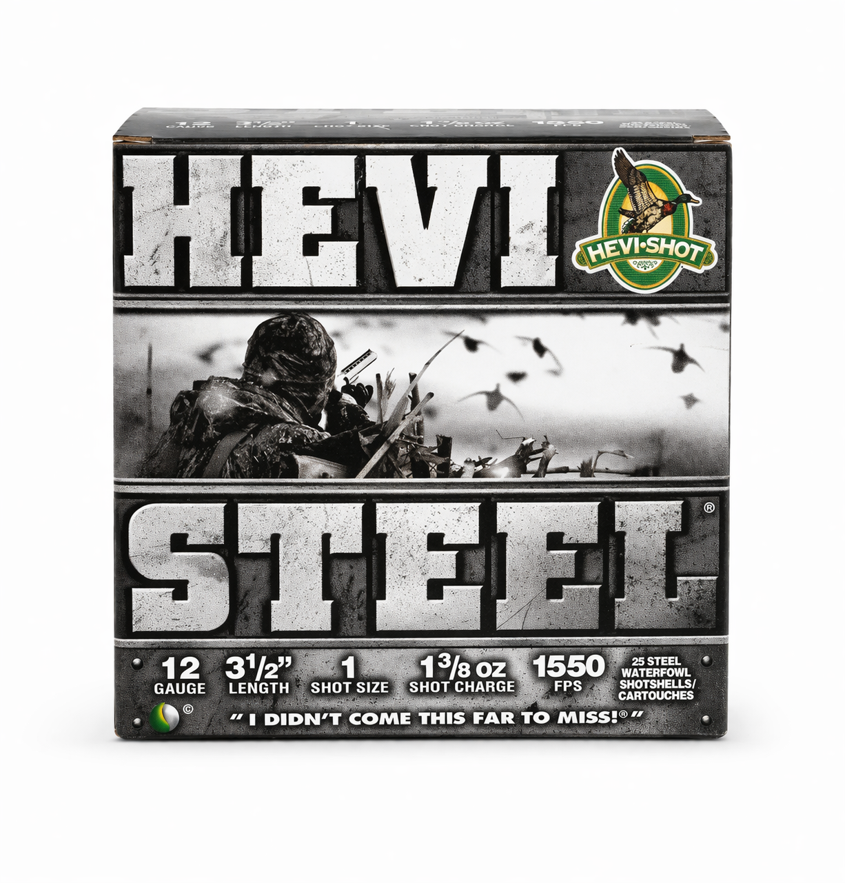 HEVI-Shot Steel 12 Gauge 3.5″ Shotgun Shells – #1 Shot, 1 3/8 oz, 1550 FPS (25 Rounds)